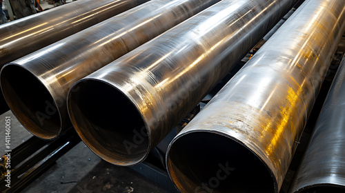 Naklejka premium A construction worker welding steel pipes in a workshop. Featuring precision...