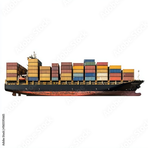 Obraz premium A Container Ship Isolated on a White Background, Shipping Industry, Maritime...