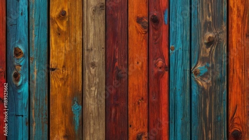 Fototapeta premium A contemporary abstract pattern with colorful wood paneling in various shades...