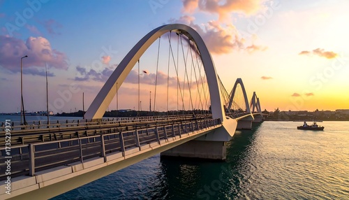 Obraz premium A contemporary arched bridge at golden hour