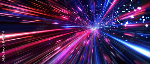 Obraz premium A contemporary red and blue technology-themed background with bursting light lines and a speed-infused motion effect, creating an eye-catching visual experience.