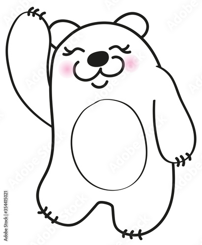 © pannat, Fototapeta premium A contented bear smiles and waves its paw. Hand outline drawing Isolated on a white background. Minimal Scandinavian style. Doodle coloring book for children. Print for t-shirts, cups, poster, banner.