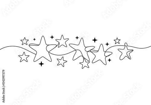 © Madiha, Naklejka premium A continuous line drawing of various sized stars connected by a single flowing line on a white background