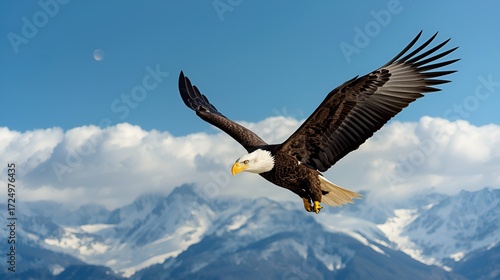 Naklejka premium A cool eagle flying above the clouds