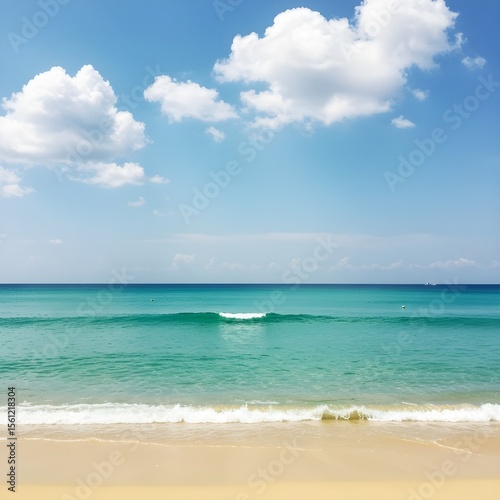 © blue wind, Fototapeta premium A cool summer beach with gentle waves rolling in