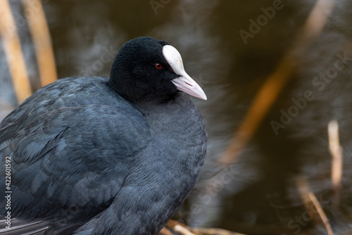Obraz premium a coot is building a nest in the water in amsterdam
