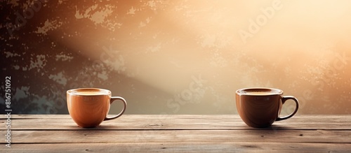 Obraz premium A copy space image of morning coffee mugs on a wooden table