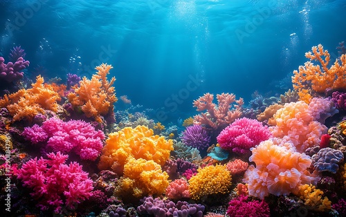© Creative Design , Naklejka premium a coral reef with colorful plants and sunlight