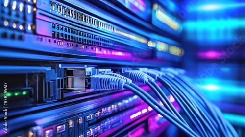 Fototapeta premium A corporate office network setup with networking equipment strategically...