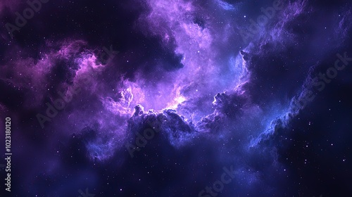 © sarun, Fototapeta premium A cosmic abstract background filled with swirling galaxies, stars, and nebula clouds in vibrant purples and blues.