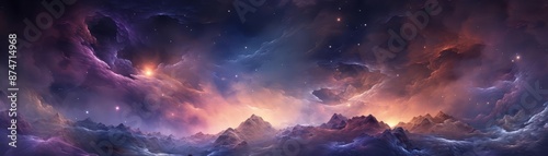 Fototapeta premium A cosmic abstract background illustration with deep blues and sparkling...