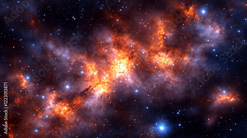 Naklejka premium A cosmic background with glowing nebulae and distant stars, space, galaxy, cosmic, vibrant