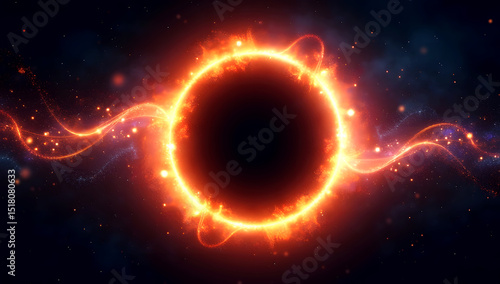 Obraz premium A cosmic black hole with glowing energy rings in deep space abstract illustration