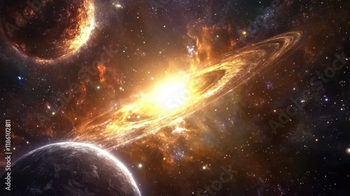 © Nike, Obraz premium A Cosmic Dance of Planets, Stars, and a Spiral Galaxy