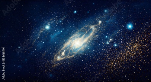 Fototapeta premium A cosmic-inspired glitter galaxy with deep blues and sparkling gold dust, Ai Generated