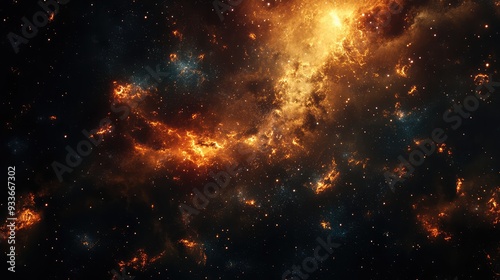 Naklejka premium A cosmic landscape showing glowing, ethereal residue from ancient stellar events, blending with the dark, vast universe.