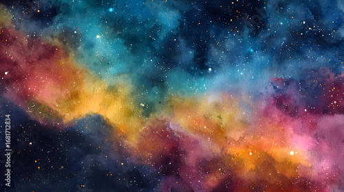 Fototapeta premium A cosmic nebula blending into watercolor texture