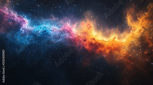 Naklejka premium A cosmic nebula swirling with rainbow-colored gas and space dust
