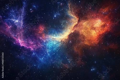 © boler, Naklejka premium A Cosmic Nebula with Multicolored Clouds and Stars