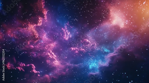Fototapeta premium A Cosmic Nebula with Pink and Blue Glowing Clouds and Scattered Stars