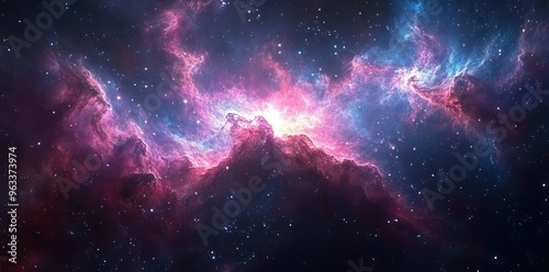 © novian, Naklejka premium A Cosmic Nebula with Pink and Blue Swirls and Stars