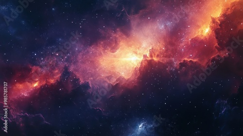 Fototapeta premium A Cosmic Nebula with Red, Orange, and Purple Hues