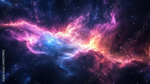 © novian, Naklejka premium A Cosmic Nebula with Vibrant Hues and Interstellar Dust