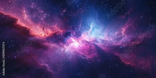 Fototapeta premium A cosmic nebula with vibrant pink, blue and purple hues.