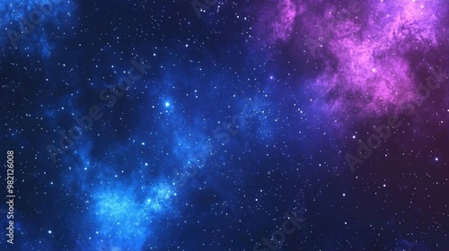 Fototapeta premium A cosmic night sky with blue and purple nebulae and scattered stars.