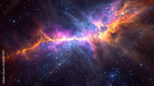 Fototapeta premium A cosmic river of iridescent nebula gases flows between galaxies, connecting...