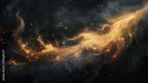 Fototapeta premium A cosmic scene featuring swirling golden clouds and sparkling stars in a dark...