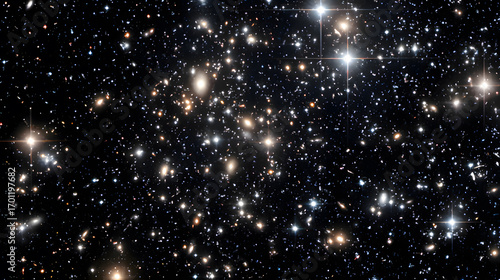 © 洁 张, Obraz premium A cosmic scene of the early universe with stars of wildly different sizes and luminosities, breaking the mold of uniformity