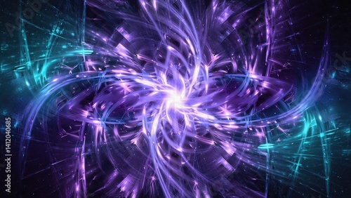 © Oleg, Fototapeta premium A cosmic scene showcasing a vibrant nebula in the midst of an electric explosion of energy and light. The rich purple hues represent the vastness of the deep universe.