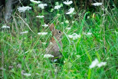 © Joshua, Fototapeta premium A Cottontail Rabbit Hiding in Tall Grass