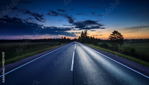 © Jarek, Fototapeta premium A country asphalt road at night Latvia