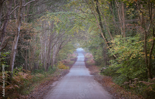 Naklejka premium A country lane in Sussex through a tree tunnel in autumn