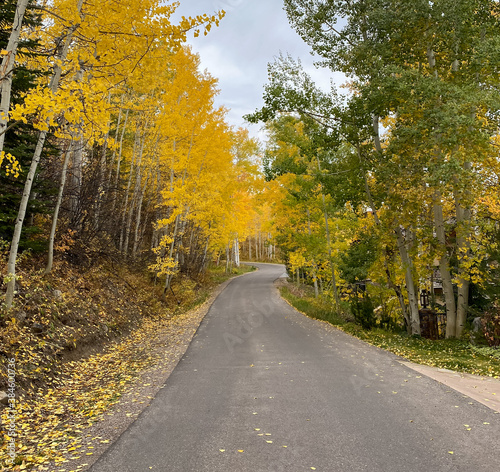 © Fang zheng, Obraz premium A countryside path covered by fall foliage