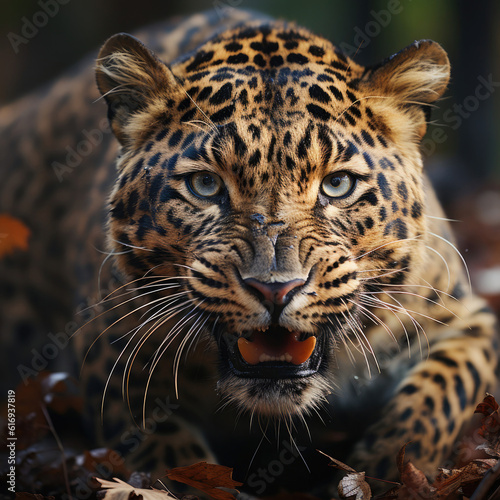 Fototapeta premium A courageous leopard (Panthera pardus) asserting its dominance in its...