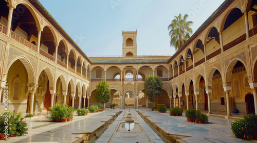 © EmmaStock, Fototapeta premium A courtyard with a fountain and trees
