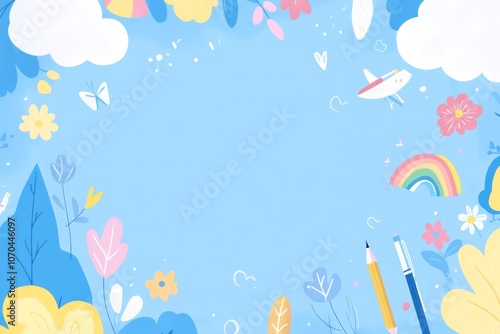 © Werckmeister, Naklejka premium a cover page for an nursery school notebook, featuring blue design with blank space