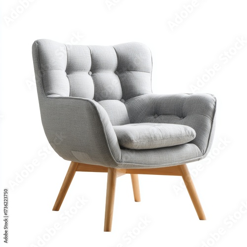 Naklejka premium A cozy and stylish armchair, with light grey fabric and wooden legs