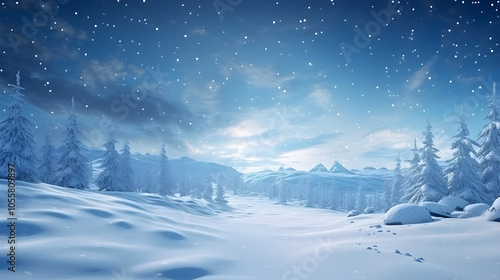 © Anna Iluschenko, Fototapeta premium A cozy little house near a stream in the midst of snowy mountains. The mesmerizing winter landscape, enveloped in a fairy-tale atmosphere, fascinates with its peace and beauty.