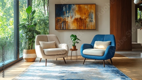 © KarpenArt Studio, Obraz premium A cozy living room with two chairs and a painting on the wall.
