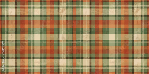 © Skyqun, Fototapeta premium A cozy orange and green plaid pattern for warm autumn themes.