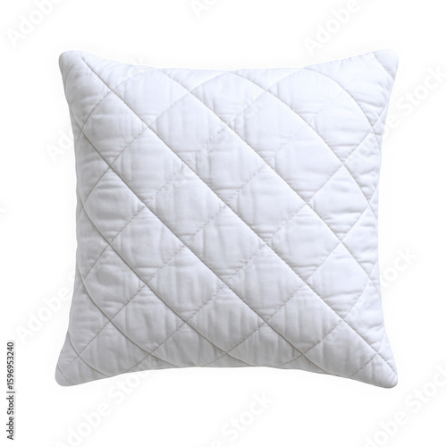 © Artistla, Obraz premium A cozy white quilted throw pillow with a diamond pattern, perfect for decorating any living space.