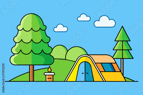 Naklejka premium A cozy winter camping scene in a forest with snow-covered trees and a starry...