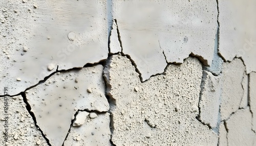 © KWY, Fototapeta premium a crack in a concrete wall that has been painted white