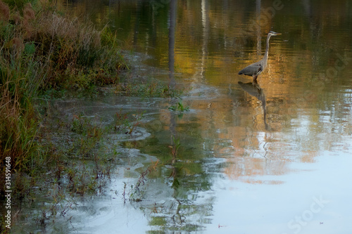 © Ciara, Obraz premium A crane in watercolors beside the shoreline.