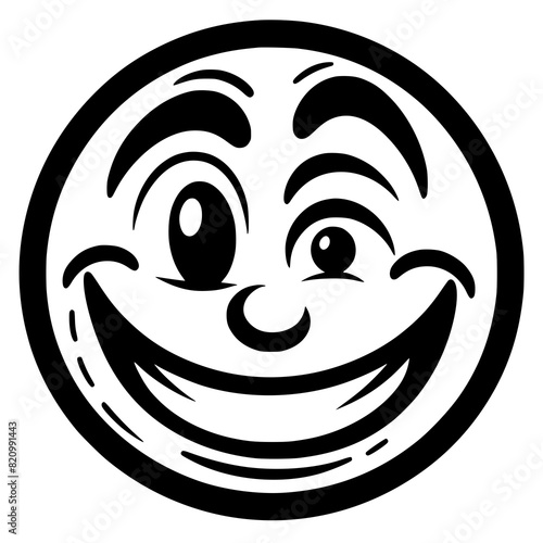 Fototapeta premium A crazy and funny smiley face in black and white, perfect for emotional expression illustrations, cartoons, humorous designs, and versatile creative projects
