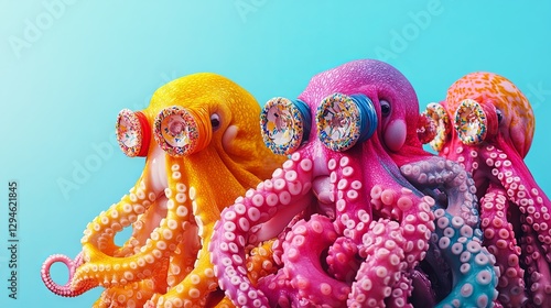 Obraz premium A creative animal concept featuring a group of octopuses dressed in funky,...